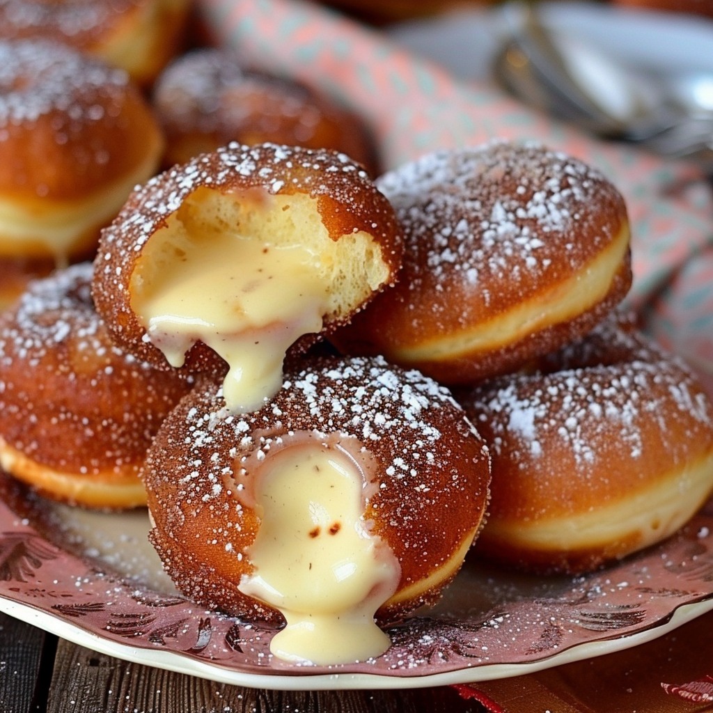 Puha, aranybarna fánkok, pont mint régen, gazdag vaníliás tésztával töltve… igazi klasszikus a konyháinkban 👩🍳